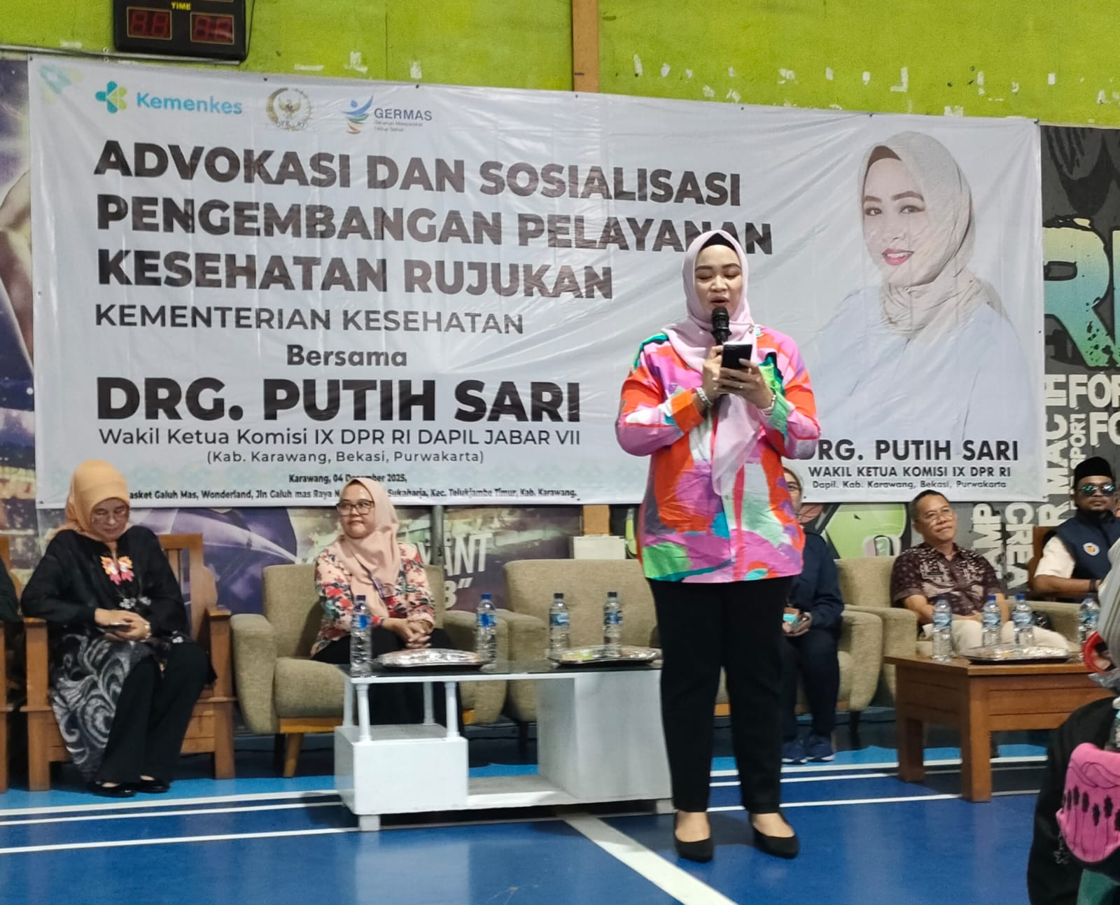 KARAWANG – Kegiatan Gerakan Masyarakat, Advokasi dan Sosialisasi Pengembangan Pelayanan Kesehatan Rujukan Kementerian Kesehatan Republik Indonesia (Kemenkes RI) bersama Drg. Putih Sari, Wakil Ketua Komisi IX DPR-RI Daerah Pemilihan Jabar VII (Kabupaten Karawang, Bekasi, Purwakarta), digelar di GOR Basket Galih Mas, Wonderland, Jalan Galuh Mas Raya No. 001, Desa Sukaharja, Kecamatan Telukjambe Timur, Karawang, Kamis (04/12/25).