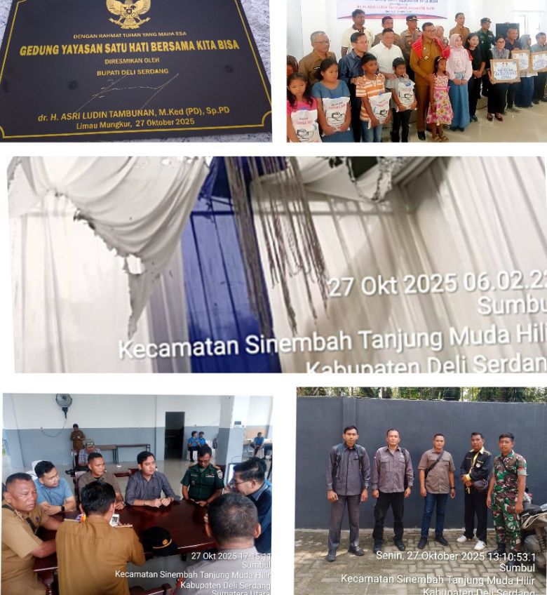 Deli Serdang, 27 Oktober 2025, ElangMasNews.Com, Bupati Deli Serdang, dr. Asri Ludin Tambunan, meresmikan Gedung Baru Yayasan Satu Hati Bersama Kita Bisa di Kabupaten Deli Serdang, Senin (27/10/2025) sore. Peresmian ini menjadi momentum penting dalam upaya memperkuat kegiatan sosial kemasyarakatan di wilayah tersebut.