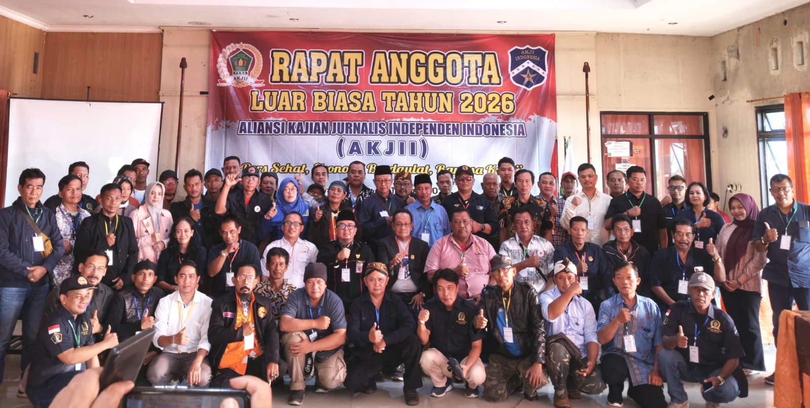 Karanganyar — elangmasnews.com,- Dewan Pimpinan Pusat (DPP) Aliansi Kajian Jurnalis Independen Indonesia (AKJII) resmi menetapkan Agus Yusuf Ahmadi sebagai Ketua Umum periode 2026–2031. Penetapan dilakukan secara aklamasi dalam Rapat Anggota Luar Biasa yang digelar pada 18–19 April 2026 di Hotel Pringgodani, Tawangmangu, Karanganyar, Jawa Tengah.