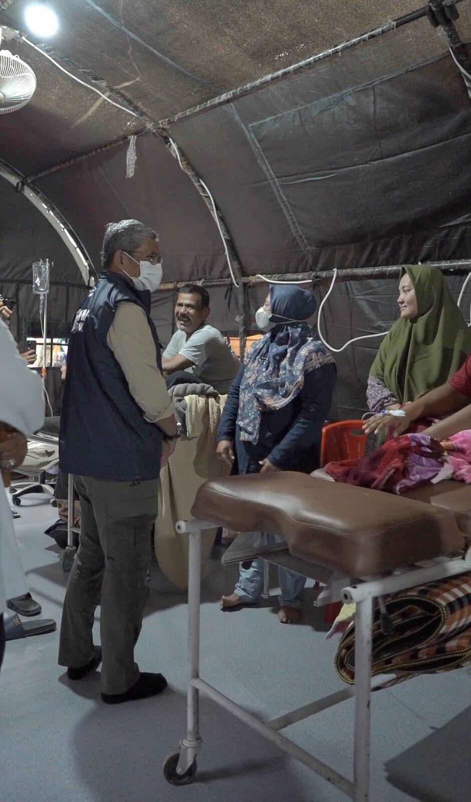 Dengan penuh empati, Teddy merespons, “Yang penting sekarang Bapak semoga cepat sehat ya. Istirahat yang cukup agar cepat pulih,” ucapnya sambil menyapa pasien lain. Ia juga memberikan pesan umum kepada pasien dan tenaga kesehatan agar tetap menjaga kesehatan di tengah situasi darurat tersebut.