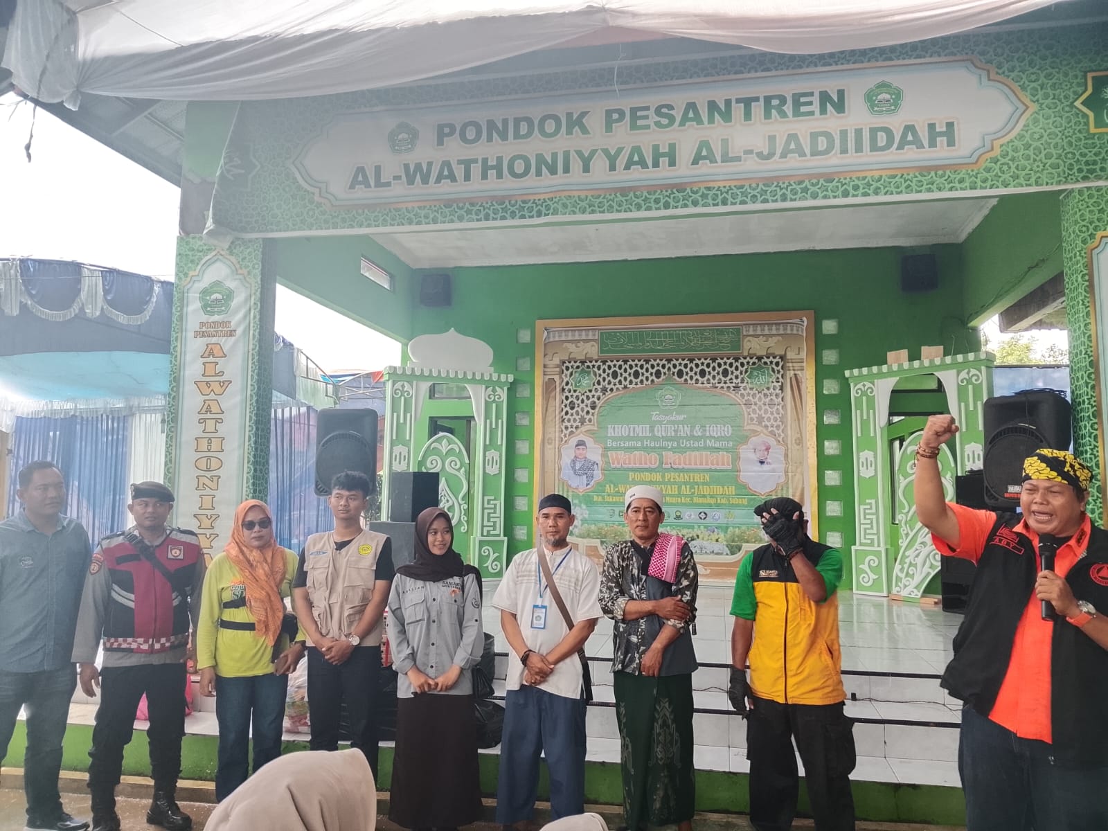 Elangmasnews.com, Blanakan Subang – Bertepatan di hari kegiatan Hotmil Qur,an dan ikro tahun ajaran tahun 2025 – 2026 serta Haul mama kiyai Watho Fadilah yang ke 19 tahun di Pondok pesantren Al Wathoniyyah Al Kadiidah Desa Muara,Kecamatan Blanakan,Kabupaten Subang,Jawabarat Sabtu 7 Febuari 2026,BPBD Kabupaten Subang bersama para komonitas Subang di antaranya,ada dari DPMFIKOM (Dewan Perwakilan Mahasiswa fakultas Ilmu Komunikasi) Unipersitas UNSUB Subang,Pramuka DKR (Dewan Kerja Ranting) Kecamatan Pegaden,Badut Kabut Salju,Pecinta Alam,komonitas enjoy dan dari Kelurahan Cigadung Subang yang datang berkunjung ke Pondok Pesantren Al Wathoniyyah Al Jadiidah dengan memberikan langsung Bantuan makanan dan Alat tulis,Buku dan ikro.