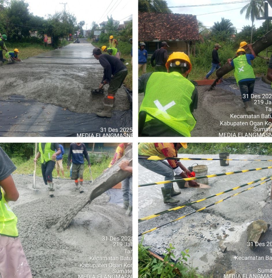 Elangmasnews.com, OKU – Tim media pada Rabu (31/12/2025) mendatangi lokasi proyek pengecoran jalan yang sempat viral di media sosial pada malam sebelumnya. Proyek tersebut berlokasi di Jalan Pancur, Desa Tanjung Baru, Kecamatan Baturaja Timur, Kabupaten Ogan Komering Ulu (OKU).