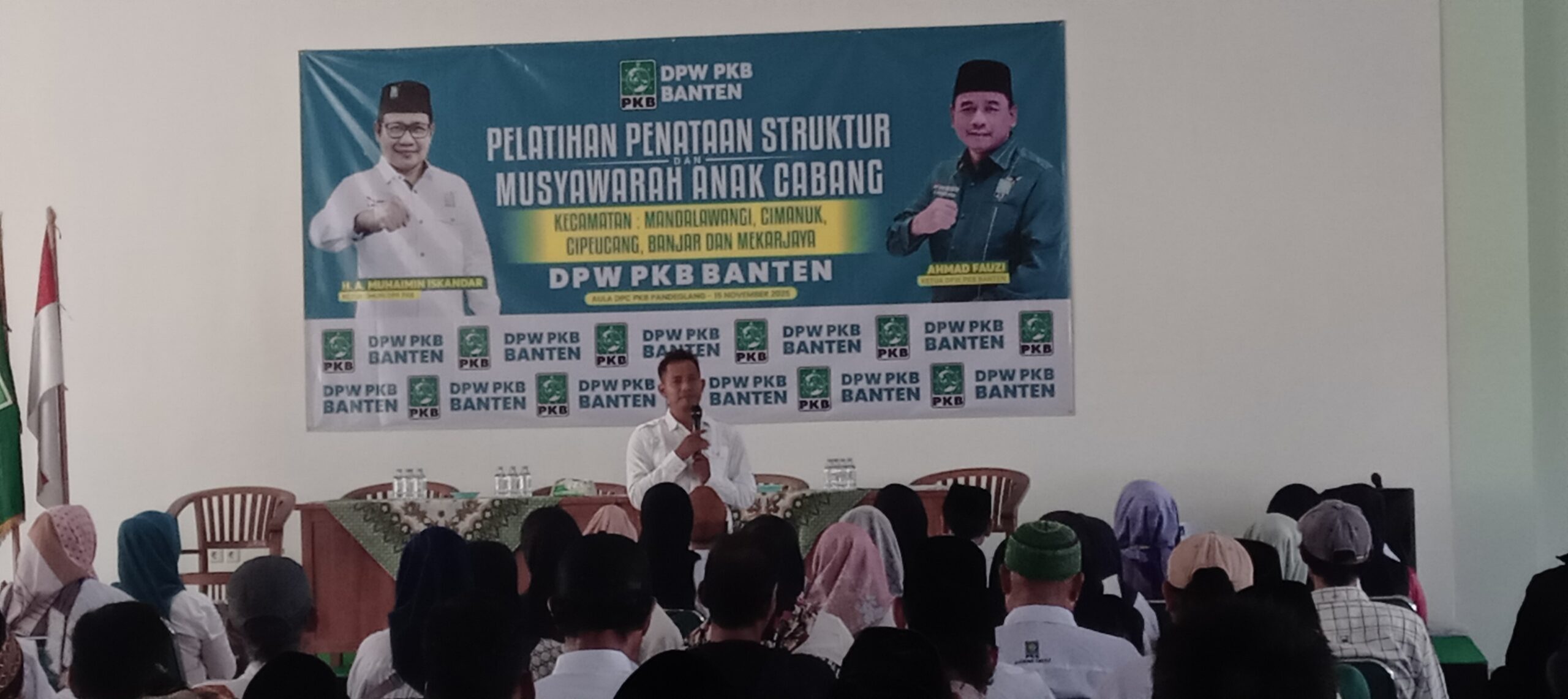 ElangmasNews.com, Pandeglang – Dewan Pimpinan Wilayah (DPW) Partai Kebangkitan Bangsa (PKB) Provinsi Banten menyelenggarakan kegiatan Pelatihan Penataan Struktur Musyawarah Anak Cabang (Musancab) yang melibatkan lima kecamatan, yaitu Kecamatan Mandalawangi, Cimanuk, Cipecang, Banjar, dan Mekarjaya. Acara tersebut berlangsung di kantor Dewan Pengurus Anak Cabang (DPAC) PKB yang berlokasi di Jalan AMD Cikole, Pandeglang.(Sabtu 15 November 2025)