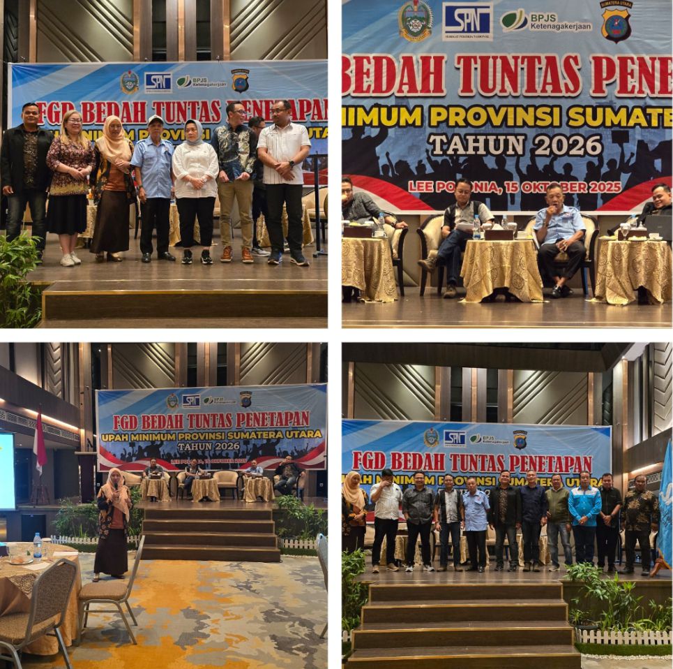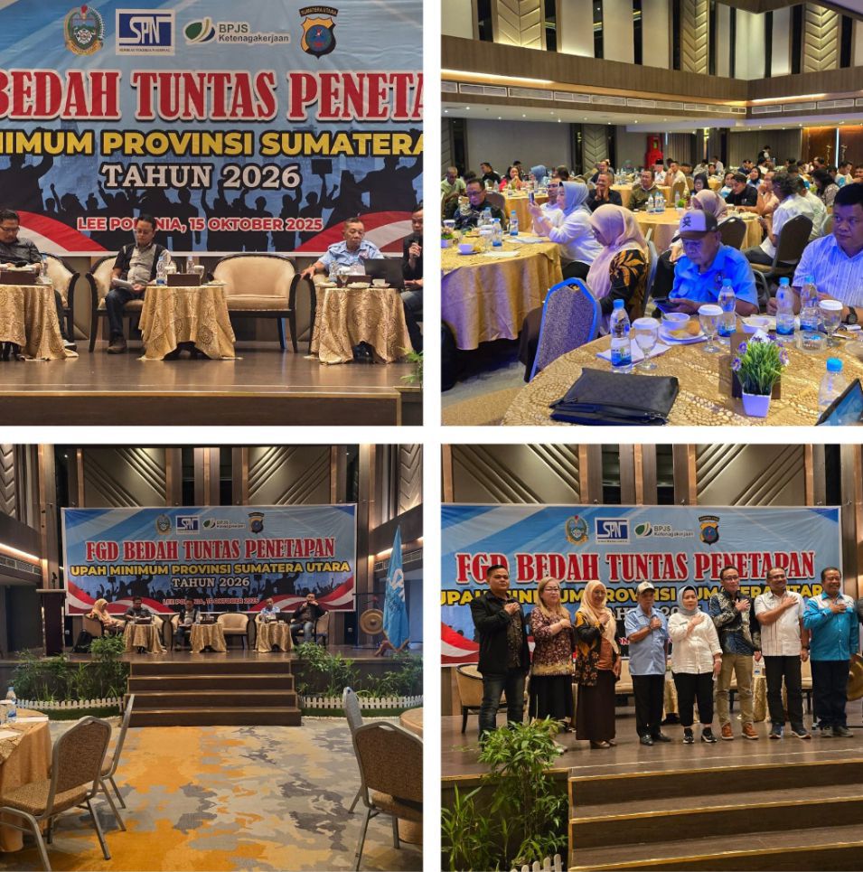 Hal itu disampaikan Anggiat dalam kegiatan Focus Group Discussion (FGD) “Bedah Tuntas Penetapan Upah Minimum Provinsi Sumatera Utara Tahun 2026” yang digelar di Le Polonia Hotel and Convention, Medan, Rabu (15/10) sore. FGD tersebut dihadiri berbagai unsur tripartit antara pemerintah, pengusaha, dan pekerja.