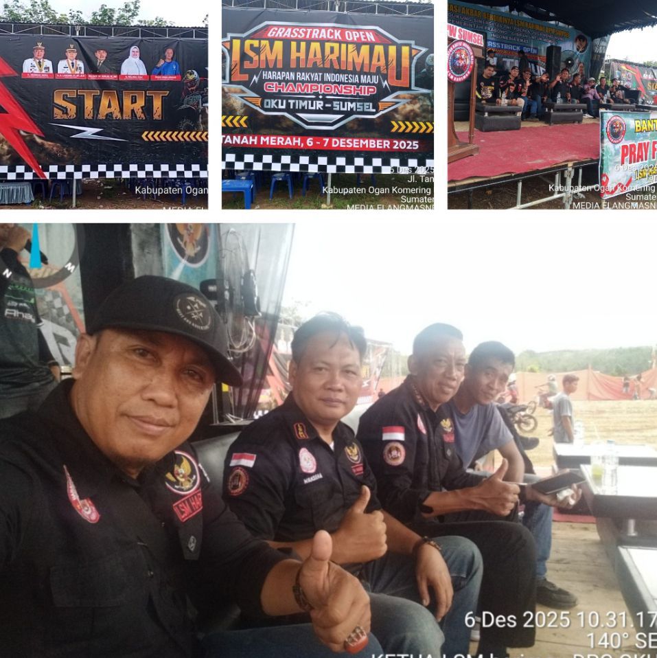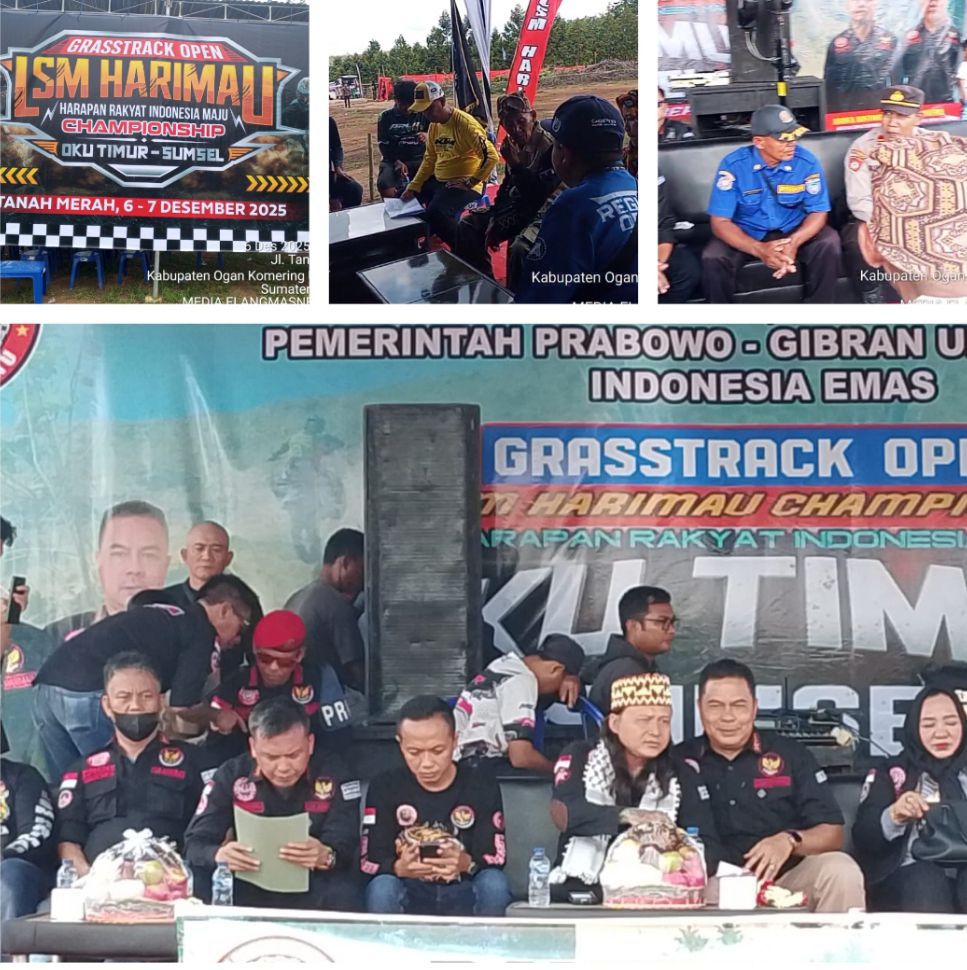 Elangmasnews.com,OKU Timur-99 Ajang Grasstrack Open LSM Harimau Championship yang digelar pada 6–7 Desember 2025 berlangsung meriah dan mendapat sambutan luar biasa dari masyarakat. Kegiatan ini dipusatkan di Desa Tanah Merah BK 10, Kecamatan Belitang Madang Raya, Kabupaten OKU Timur, pada Sabtu (06/12/2025).