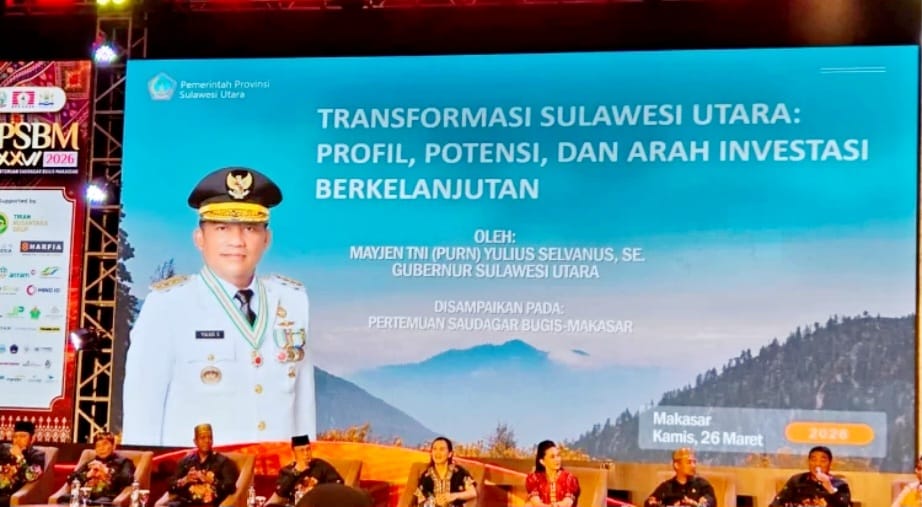 Elangmasnews.com, MAKASSAR — Gubernur Provinsi Sulawesi Utara (Sulut), Mayor Jenderal TNI (Purn.) Yulius Selvanus Komaling, SE, secara terbuka membentangkan karpet merah investasi bagi para pengusaha asal Bugis-Makassar. Momentum ini tercipta saat ia hadir dalam Pertemuan Saudagar Bugis Makassar (PSBM) XXVI 2026 yang digelar di Hotel Claro Makassar, 25–27 Maret 2026.