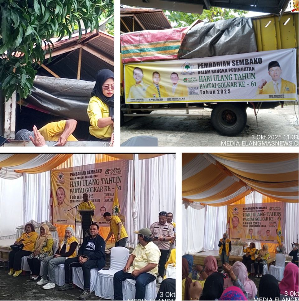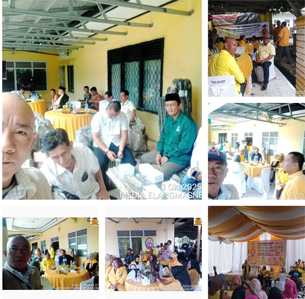 Baturaja, ELANGMASNEWS.COM, – Partai Golkar menggelar peringatan Hari Ulang Tahun (HUT) ke-61 pada Jumat (3/10/2025) di Jalan Veteran, Kelurahan Kemalaraja, Kecamatan Baturaja Timur, Kabupaten Ogan Komering Ulu (OKU), Sumatera Selatan. Acara ini berlangsung meriah dan dihadiri ratusan masyarakat, kader, simpatisan, serta sejumlah tokoh penting.