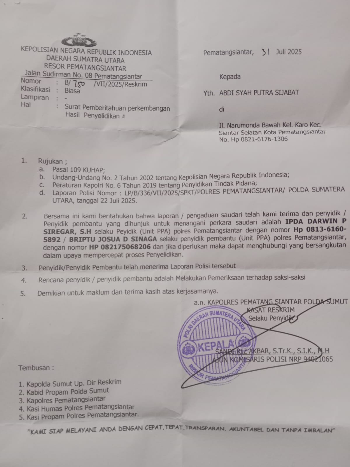 Ketua Perlindungan Anak Terpadu Berbasis Masyarakat (PATBM) Kota Pematangsiantar, Tri Utomo, menyebut sikap penyidik yang tak kunjung mengeluarkan langkah konkret sebagai indikasi pembiaran. “Ketika penyidik tahu pelaku sudah tidak berada di alamat, tidak sekolah lagi, bahkan diduga pindah ke Aceh dan Pekanbaru, tapi tidak ada tindakan lanjutan—ini kelalaian serius. Kasus anak wajib ditangani cepat dan tegas,” ucapnya.
