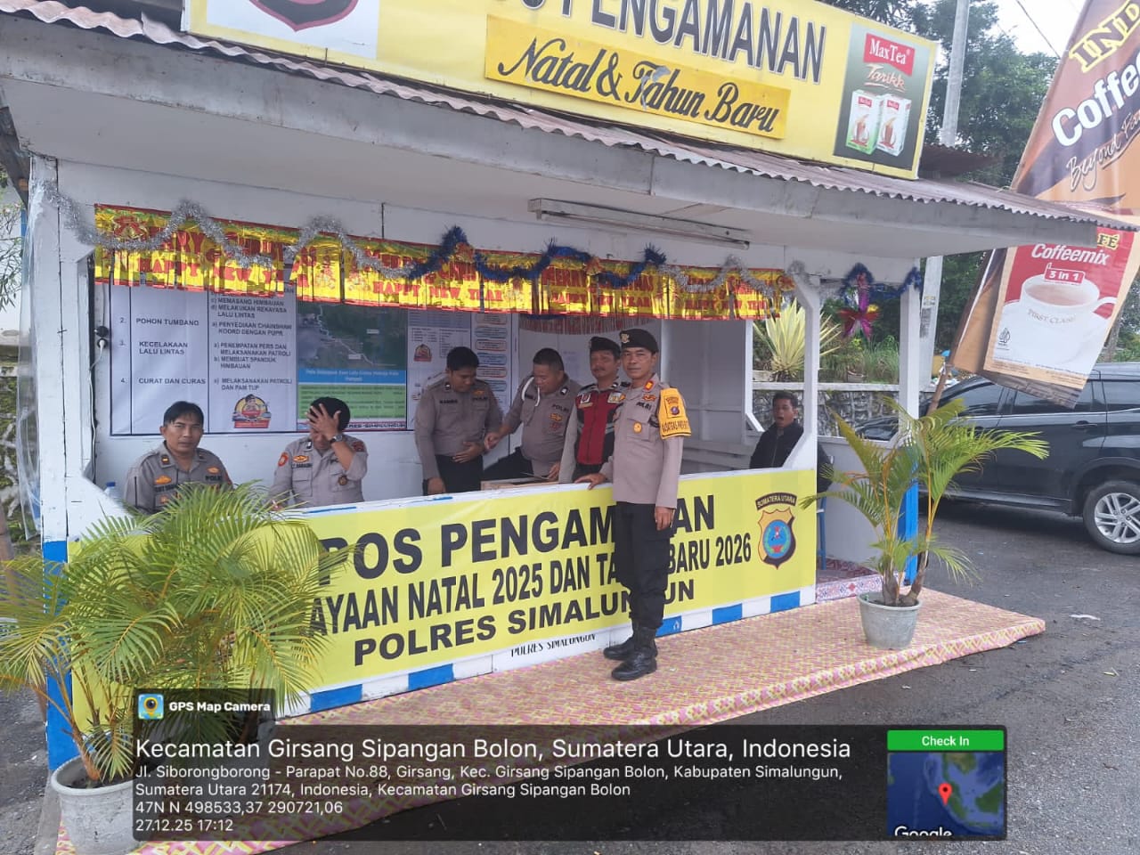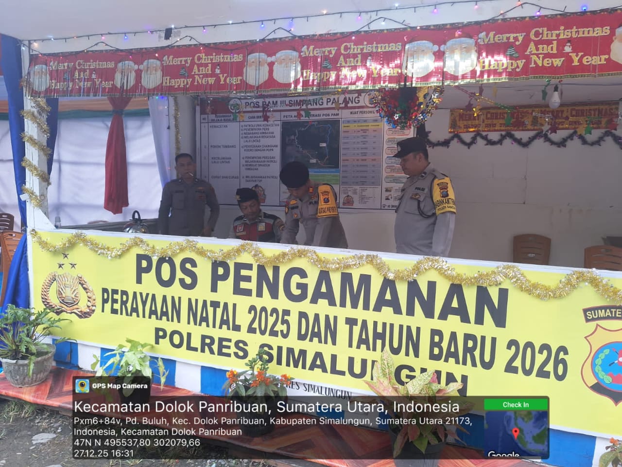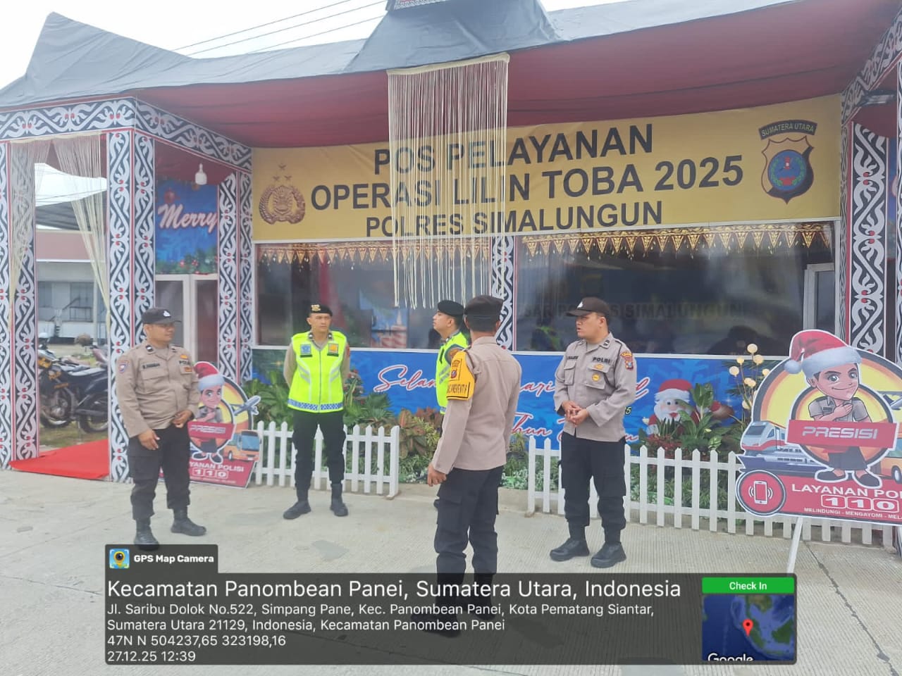 Elangmasnews.com. SIMALUNGUN – Pengawasan ketat terhadap kesiapan pos-pos pengamanan Operasi Lilin Toba 2025 terus dilakukan jajaran Polres Simalungun. Pada Sabtu (27/12/2025), Kasat Samapta Polres Simalungun AKP Rudi Handoko, SH, MH., selaku Kasatgas Preventif melakukan monitoring langsung ke 5 pos pengamanan untuk memastikan situasi kamtibmas dan lalu lintas tetap kondusif menjelang Tahun Baru 2026.