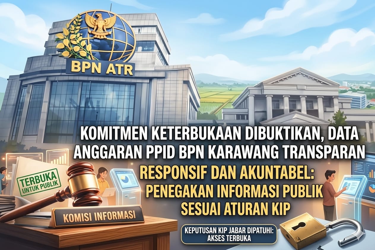 Karawang – elangmasnews.com ,- Pemberitaan yang menyebutkan Pejabat Pengelola Informasi dan Dokumentasi (PPID) Kantor Pertanahan Kabupaten Karawang tidak memberikan jawaban substansial terhadap permohonan data anggaran dinilai tidak sepenuhnya menggambarkan fakta serta mekanisme layanan informasi publik yang berlaku.