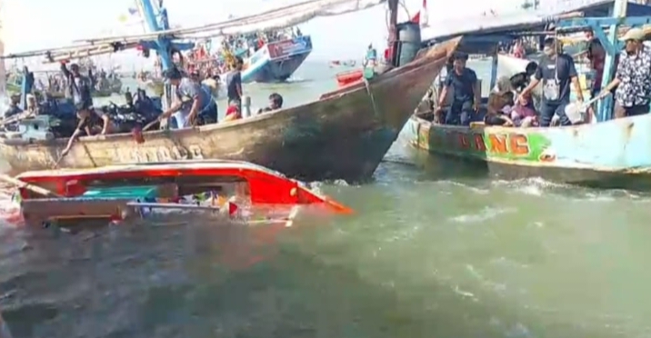 Ratusan kapal dan perahu iring iringan,mengiringi kapal yang membawa Riplika perahu Dondang dan kepala kerbau yang di lepas pada pukul 7.30 dari TPI Mina Fajar Sidik Blanakan menuju lautan lepas.