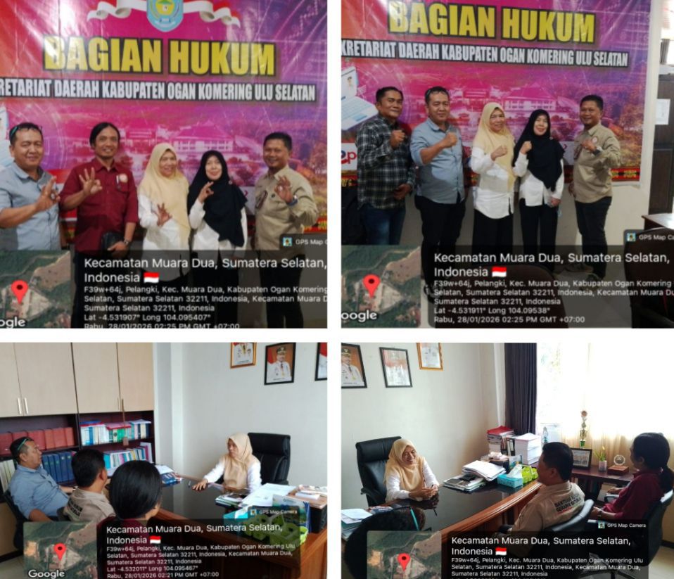 Kunjungan ini disambut langsung oleh Kepala Bagian Hukum Sekretariat Daerah Pemkab OKU Selatan, Yusrinawati, S.H., beserta jajaran.
