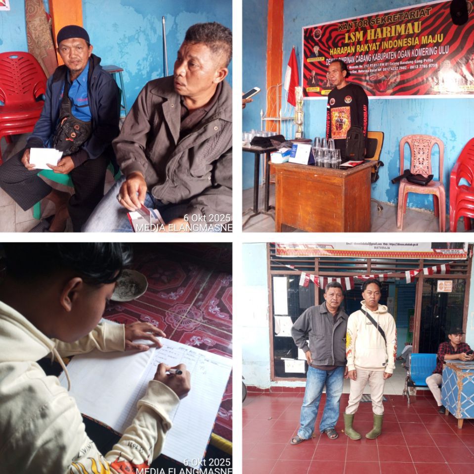 OKU, ELANGMASNEWS.COM,– Sejumlah warga mendatangi Kantor DPC LSM Harimau Kabupaten Ogan Komering Ulu (OKU) pada Senin, 6 Oktober 2025 sekitar pukul 10.00 WIB. Kedatangan warga Desa lubuk Banjar Batu Marta unit 4 dan Desa marga bakti kecamatan peninjauan kabupaten Ogan Komering ulu Sumatera Selatan ini bertujuan untuk meminta klarifikasi terkait bantuan sosial yang sebelumnya pernah mereka terima, namun kini sudah tidak lagi diberikan.
