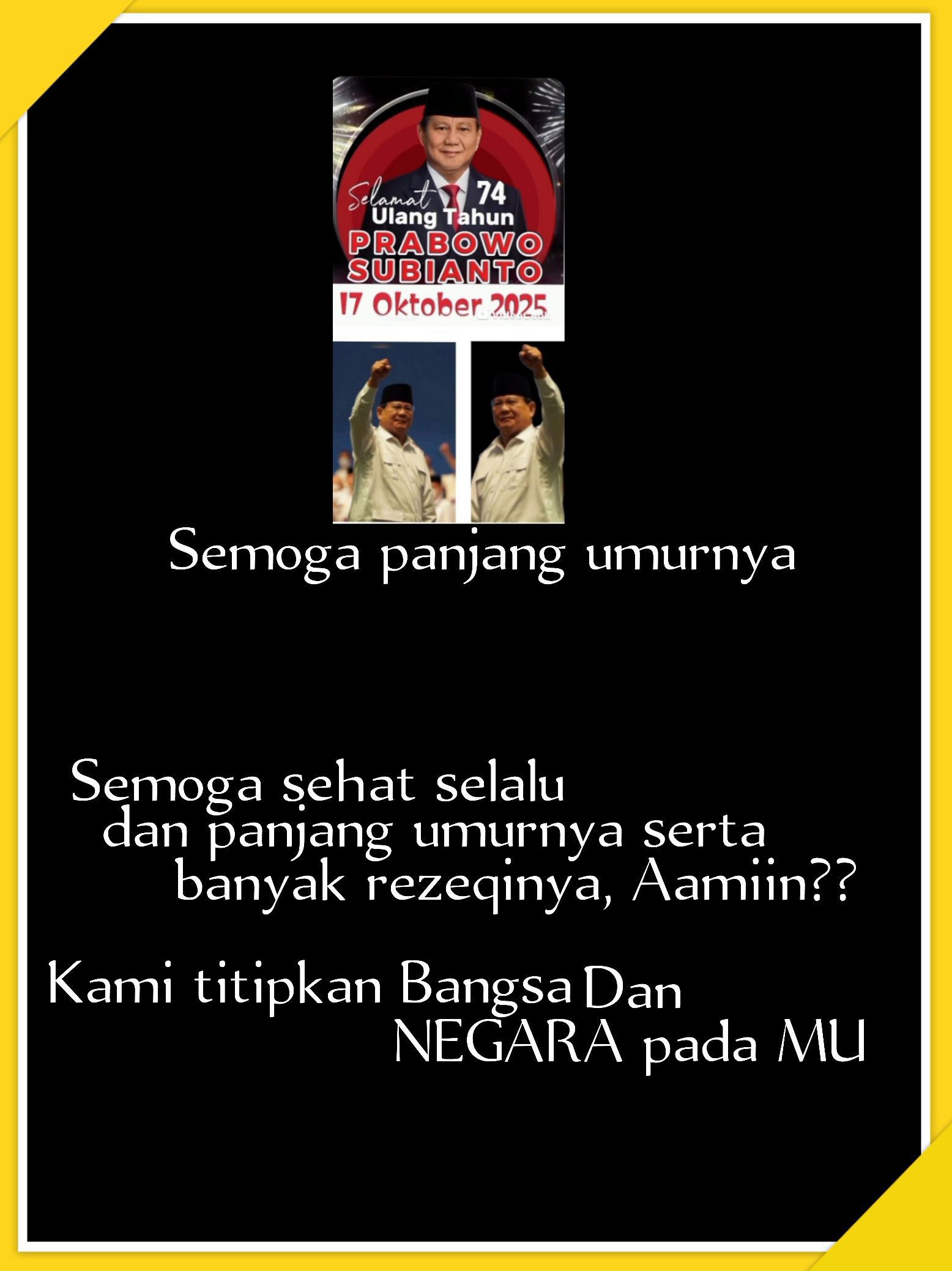 Presiden Republik Indonesia, H. Prabowo Subianto, diketahui genap berusia 74 tahun pada bulan Oktober 2025. Momen istimewa ini menjadi perhatian publik karena masyarakat dari berbagai daerah turut menyampaikan doa dan harapan terbaik bagi Presiden.