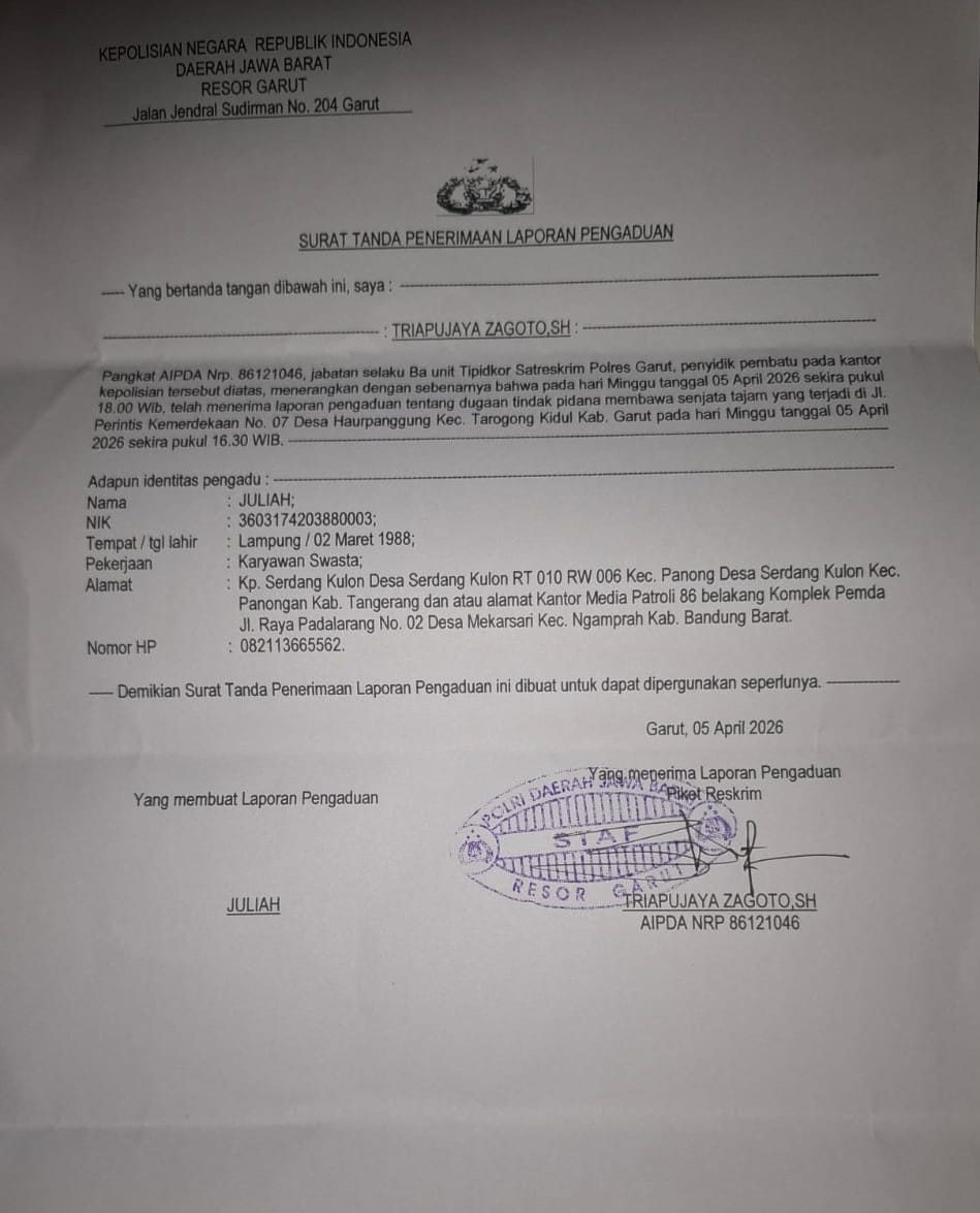 Di lokasi yang sama, salah satu pelapor, Ibu Julia, menyampaikan harapannya agar pihak kepolisian, khususnya Satreskrim Polres Garut, dapat bertindak tegas terhadap pelaku yang diduga melakukan ancaman pembacokan tersebut.