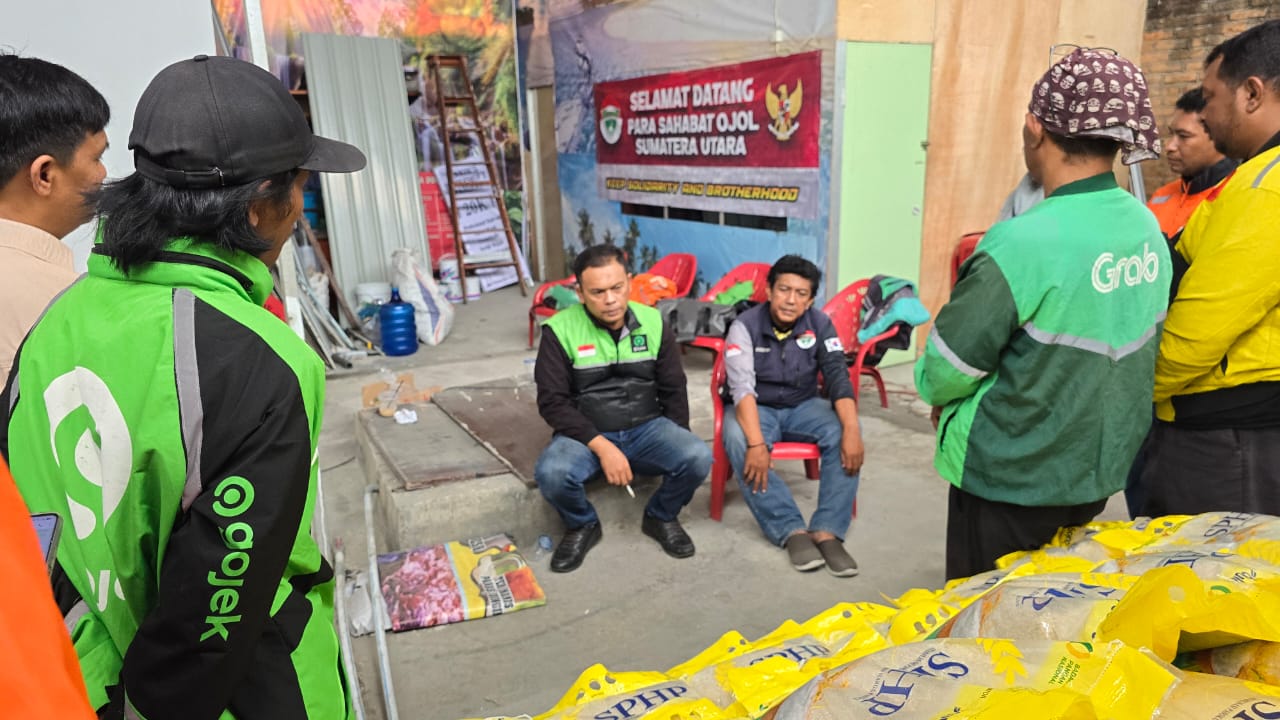 Elangmasnews.com. Medan – Sebagai wujud solidaritas dan empati terhadap korban banjir khususnya rekan driver ojek online (Ojol) Gabungan Ojek Roda Dua Medan Sekitarnya (Godams) salurkan bantuan berupa beras. Bantuan ini nantinya akan disalurkan ke Ojol korban banjir yang ada di Langkat, Tanjung Pura, Binjai, Marelan, Hamparan Perak dan Medan.
