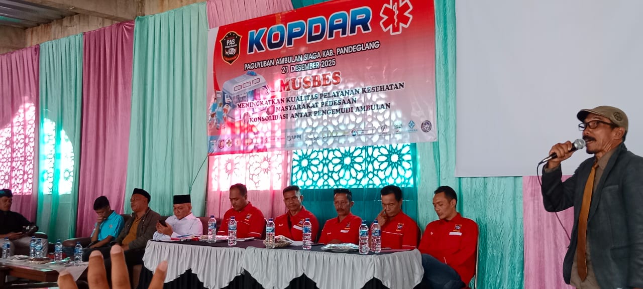 Elangmasnews.com. Pandeglang – Paguyuban Ambulance Siaga Kabupaten Pandeglang menggelar kegiatan kopi darat (Kopdar) sekaligus musyawarah besar (Musbes) pada Sabtu, 21 Desember 2025. Kegiatan tersebut berlangsung di Aula Wisata Air Tirta Persada DM, Kabupaten Pandeglang.