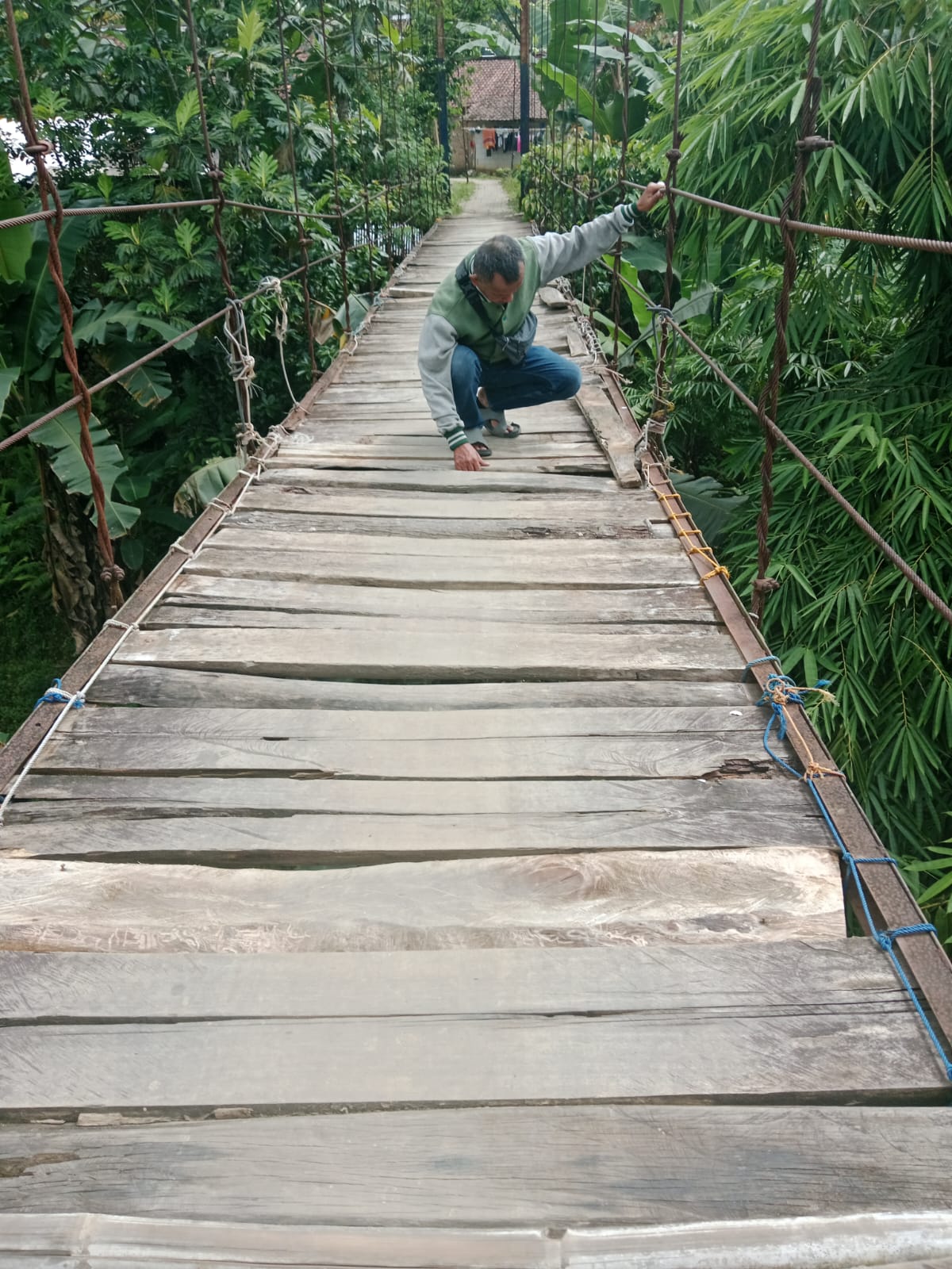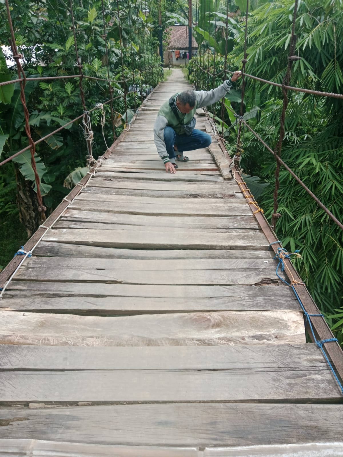 Jembatan ini merupakan akses vital bagi 4 kampung, yaitu: Kampung Jasinga, Cikadueun, Cilangging, dan Dalung. Hasil investigasi menunjukkan bahwa bahan material yang digunakan untuk rehabilitasi jembatan gantung ini diduga tidak sesuai dengan Spesifikasi Barang atau standar nasional Indonesia. Papan kayu yang digunakan diduga bukan dari jenis kayu kualitas klas 1 atau 2, melainkan kayu racik atau jabur dengan ketebalan kurang dari 3 cm.