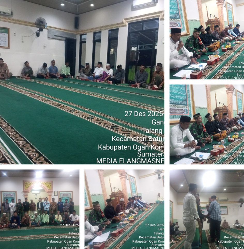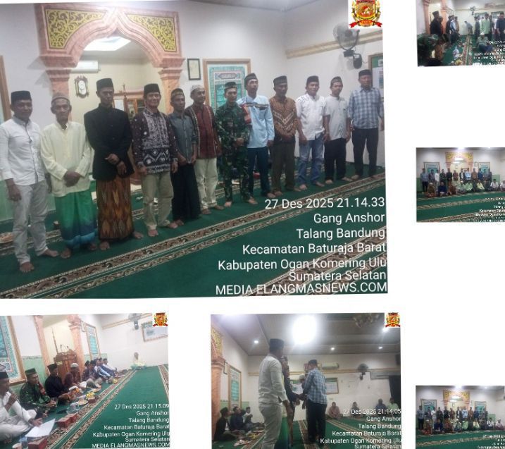 Elangmasnews.com, -BATURAJA,Ogan Komering Ulu (Oku),- Pengurus Takmir Masjid Al Ansor H.A Talang Bandung masa bhakti 2026–2028 resmi dikukuhkan dalam sebuah acara yang berlangsung khidmat pada Sabtu malam (27/12/2025) sekitar pukul 20.10 WIB.