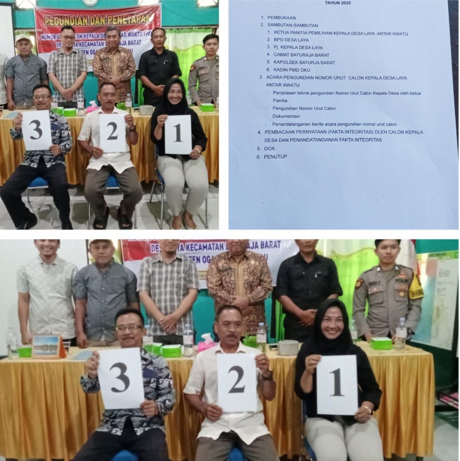 Panitia kemudian menetapkan tiga calon kepala desa yang akan bertarung pada Pilkades PAW Desa Laya, yang dijadwalkan berlangsung pada 11 Oktober 2025 mendatang.