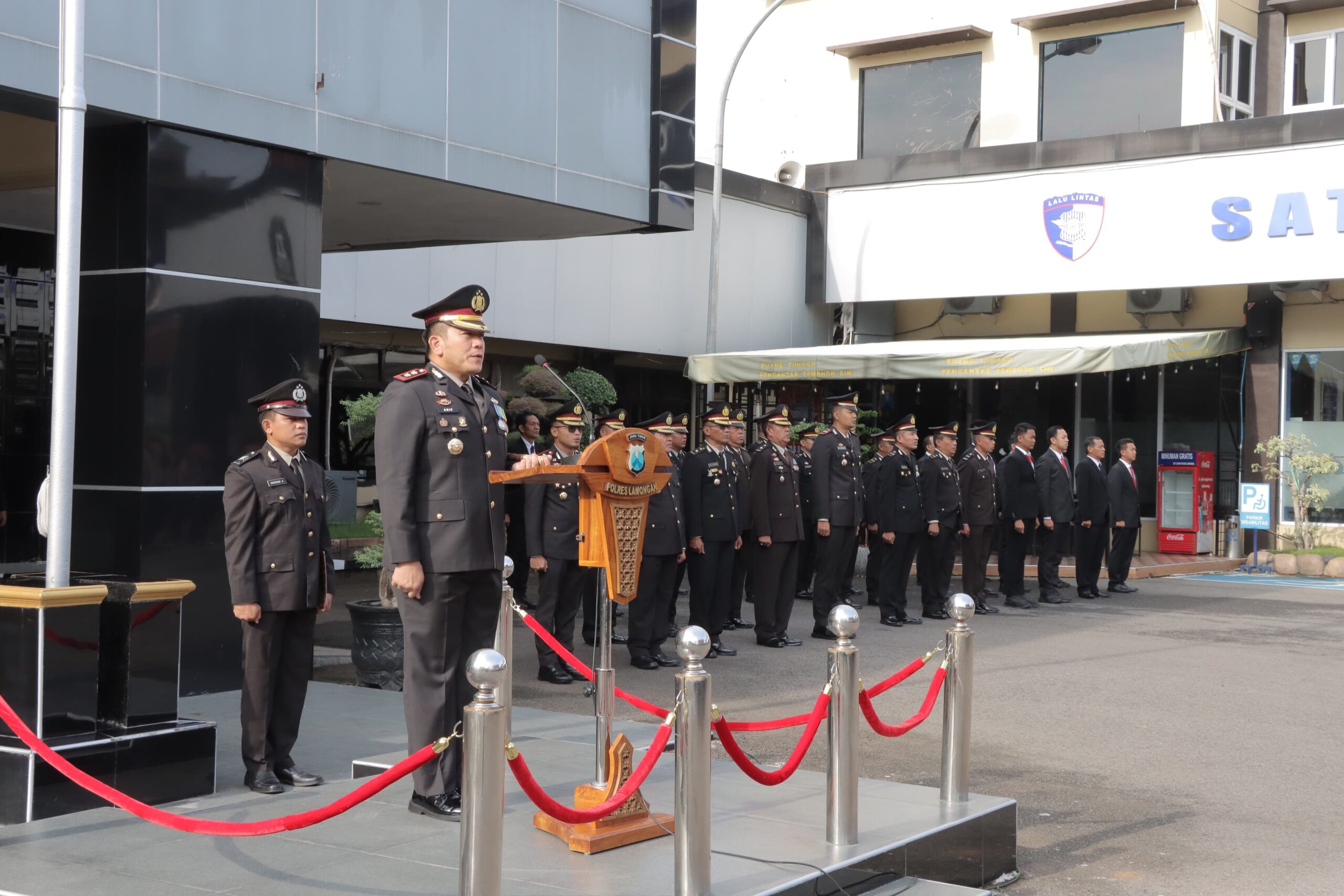 Upacara tersebut dipimpin langsung oleh Kapolres Lamongan AKBP Arif Fazlurrahman, S.H., S.I.K., M.Si dan dihadiri oleh Wakapolres Lamongan, Pejabat Utama (PJU) Polres Lamongan, para Kapolsek jajaran, serta Perwira, Bintara, dan PNS Polres Lamongan.