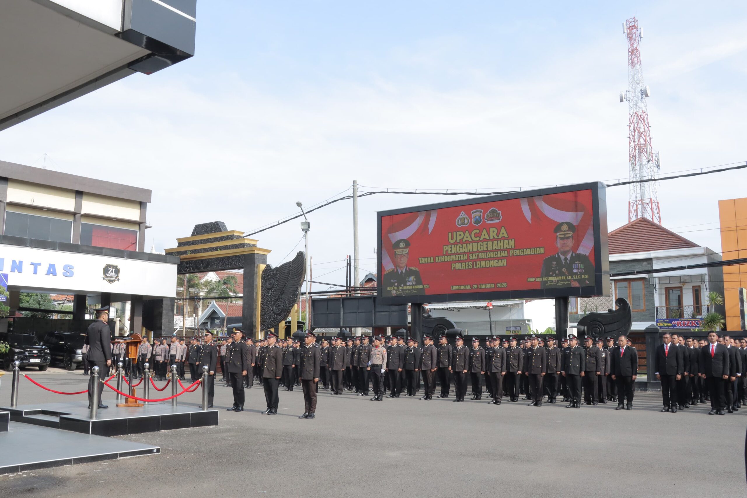 Lamongan, Elangmasnews.com 26/01/2026 – Polres Lamongan menggelar Upacara Penganugerahan Tanda Kehormatan Satya Lencana Pengabdian kepada personel Polres Lamongan yang telah menunjukkan dedikasi dan pengabdian dalam pelaksanaan tugas kepolisian.