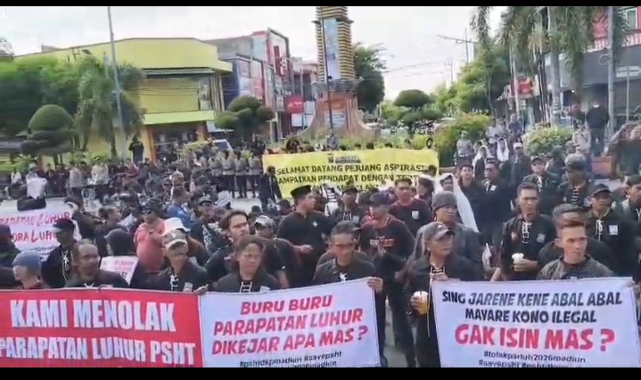 Madiun – Elangmasnews.com- Aksi Persaudaraan Setia Hati Terate (PSHT) di Alun-Alun Madiun harus dibaca sebagai sinyal politik sipil yang penting bagi negara. Di tengah fragmentasi sosial dan konflik organisasi yang berlarut, aksi ini menegaskan satu hal mendasar: ketika hukum telah memutuskan, negara tidak boleh ragu dalam mengeksekusinya.