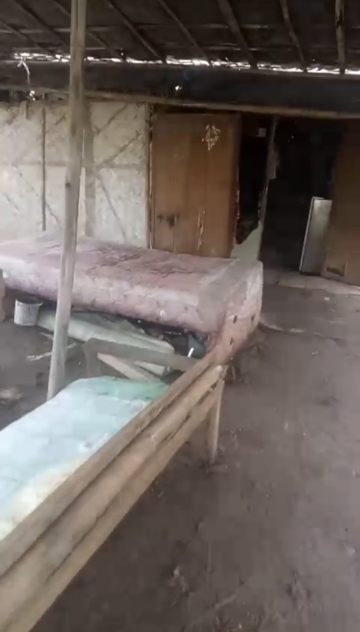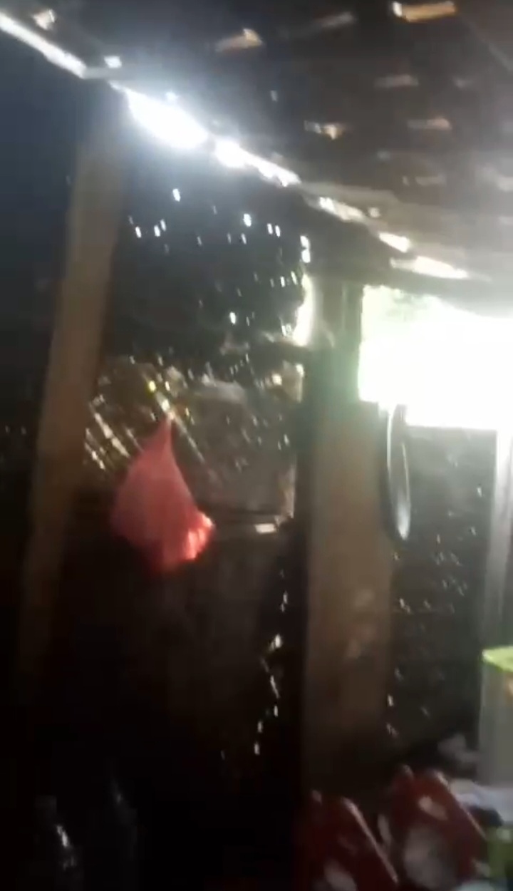 Kondisi bangunan sangat jauh dari kata layak huni. Atap hanya ditutupi terpal bekas yang bocor di banyak bagian. Di musim penghujan seperti sekarang, air sering masuk ke dalam ruangan, menambah penderitaan keluarga tersebut.