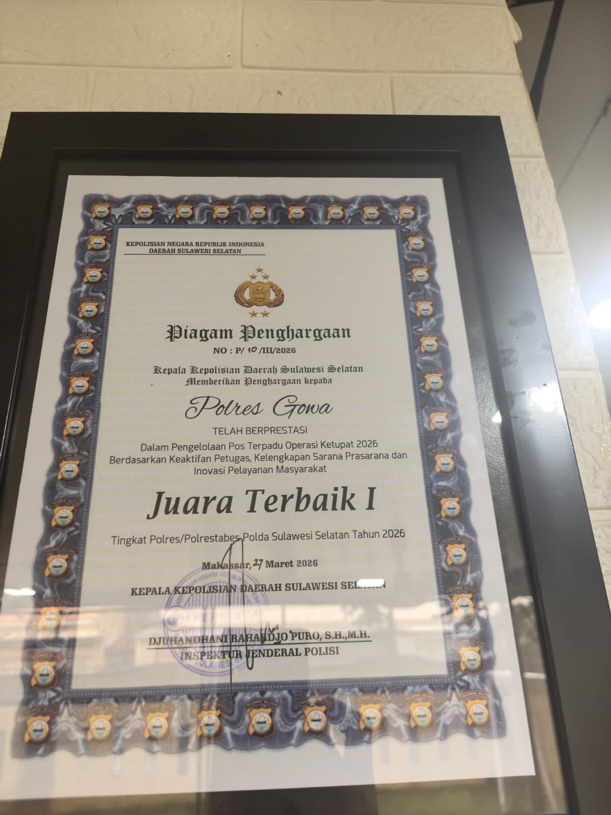 Makassar – Elangmasnews.com – Polres Gowa kembali menorehkan prestasi membanggakan dengan meraih penghargaan sebagai Polres Terbaik I dalam pelaksanaan Operasi Ketupat 2026 di jajaran Polda Sulawesi Selatan.