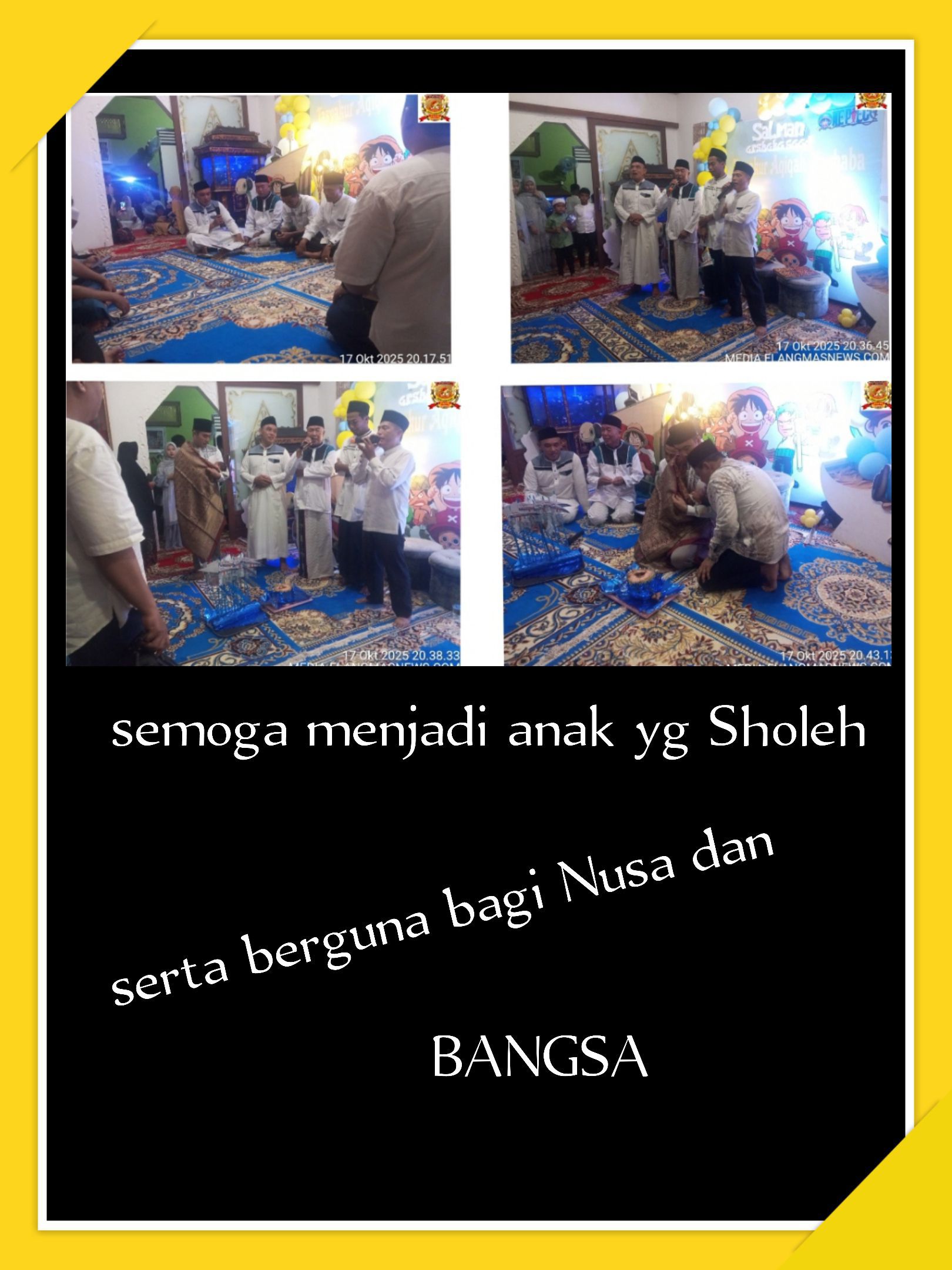 Alhamdulillah, seluruh rangkaian acara berlangsung dengan baik, lancar, aman, dan penuh keberkahan. Tasyakuran aqiqah dan marhaban ini menjadi momentum berharga bagi keluarga besar Febrianto Kuncoro, sekaligus mempererat tali silaturahmi antar keluarga, kerabat, dan masyarakat yang hadir.