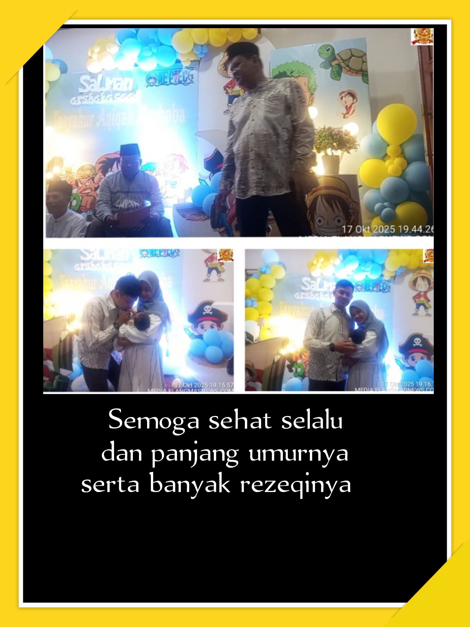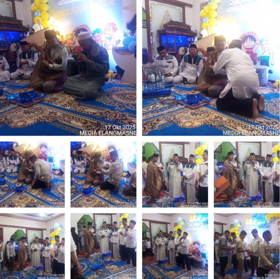 Baturaja,OKU,ElangMasNews.Com,17 Oktober 2025 — Rasa syukur dan kebahagiaan menyelimuti kediaman keluarga besar Bapak Febrianto Kuncoro, SKM., M.KM., yang pada Jumat malam Sabtu (17 Oktober 2025) menggelar tasyakuran aqiqah dan marhaban atas kelahiran cucu tercinta, Salman Arsha Kasaad bin Jeva Oktama Putra. Acara ini menjadi ungkapan syukur kepada Allah SWT atas karunia yang diberikan kepada keluarga besar beliau.
