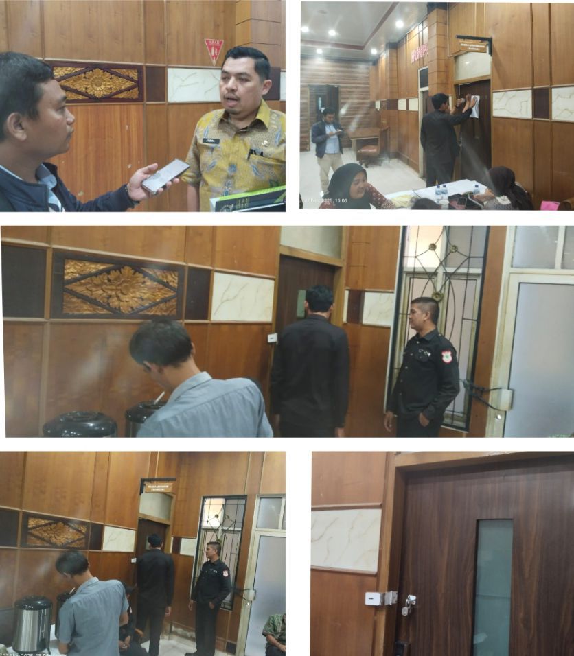 Situasi mulai berubah ketika sekitar pukul 15.07 WIB dua anggota Pamdal menutup kaca pintu ruang rapat menggunakan lembaran kertas sehingga pandangan ke dalam ruangan tertutup sepenuhnya. Tindakan tersebut menimbulkan pertanyaan dari wartawan mengenai alasan penutupan.