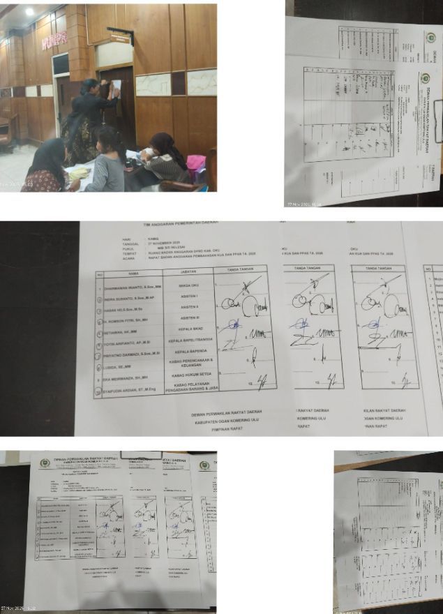 Secara bertahap, sejumlah pejabat TAPD terlihat memasuki ruangan rapat, antara lain Sekda OKU Darmawan Irianto, Asisten I Indra Susanto, Asisten II Hasan HD, pejabat BKD Setiawan, serta jajaran lainnya. Dari pihak DPRD, hadir Ketua DPRD Syahril Elmi, Wakil Ketua I Rudi Hartono, serta beberapa anggota dewan seperti Awal Fajri, Erlan Abidin, Martin Arikandi, Jerry, Densi Hermanto, dan Joni Risdianto.