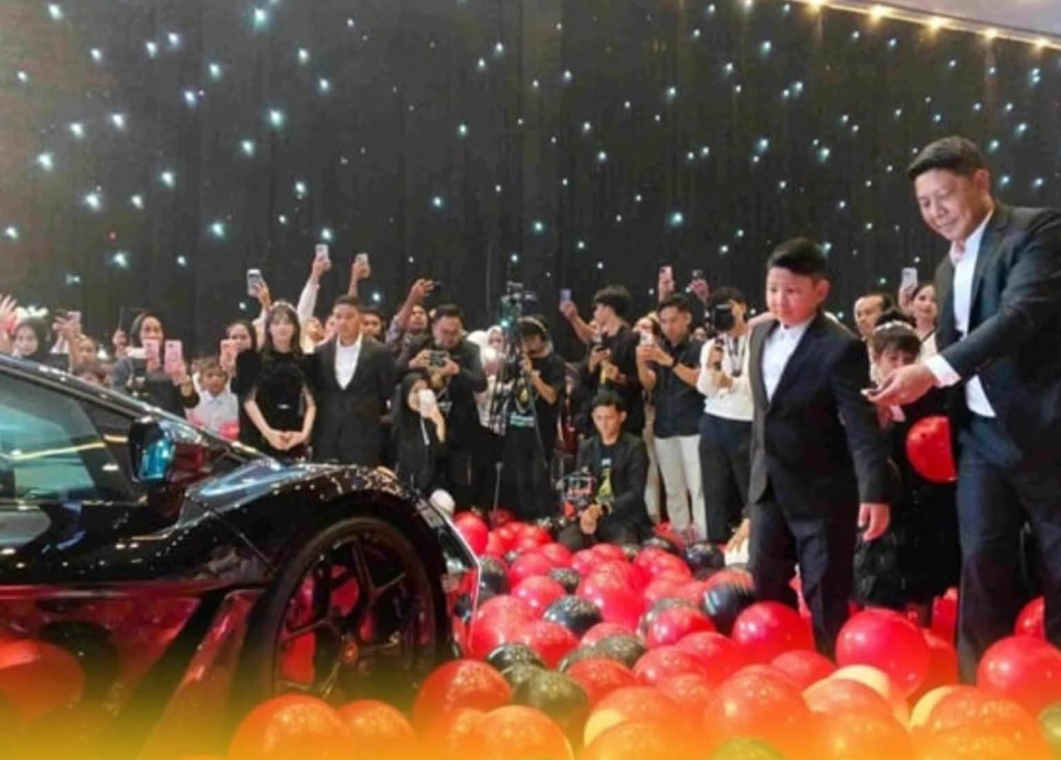 ElangmasNews.com, Makassar – Dunia maya mendadak heboh setelah beredar kabar tentang pesta ulang tahun mewah yang digelar oleh seorang pengusaha muda asal Makassar. Acara tasyakuran ulang tahun ke-9 putra pengusaha ternama H. Najmuddin, CEO TRK Holding, menjadi buah bibir karena hadiah yang diberikan sang ayah sungguh tak biasa: sebuah mobil sport Lamborghini Revuelto senilai sekitar Rp25 miliar.