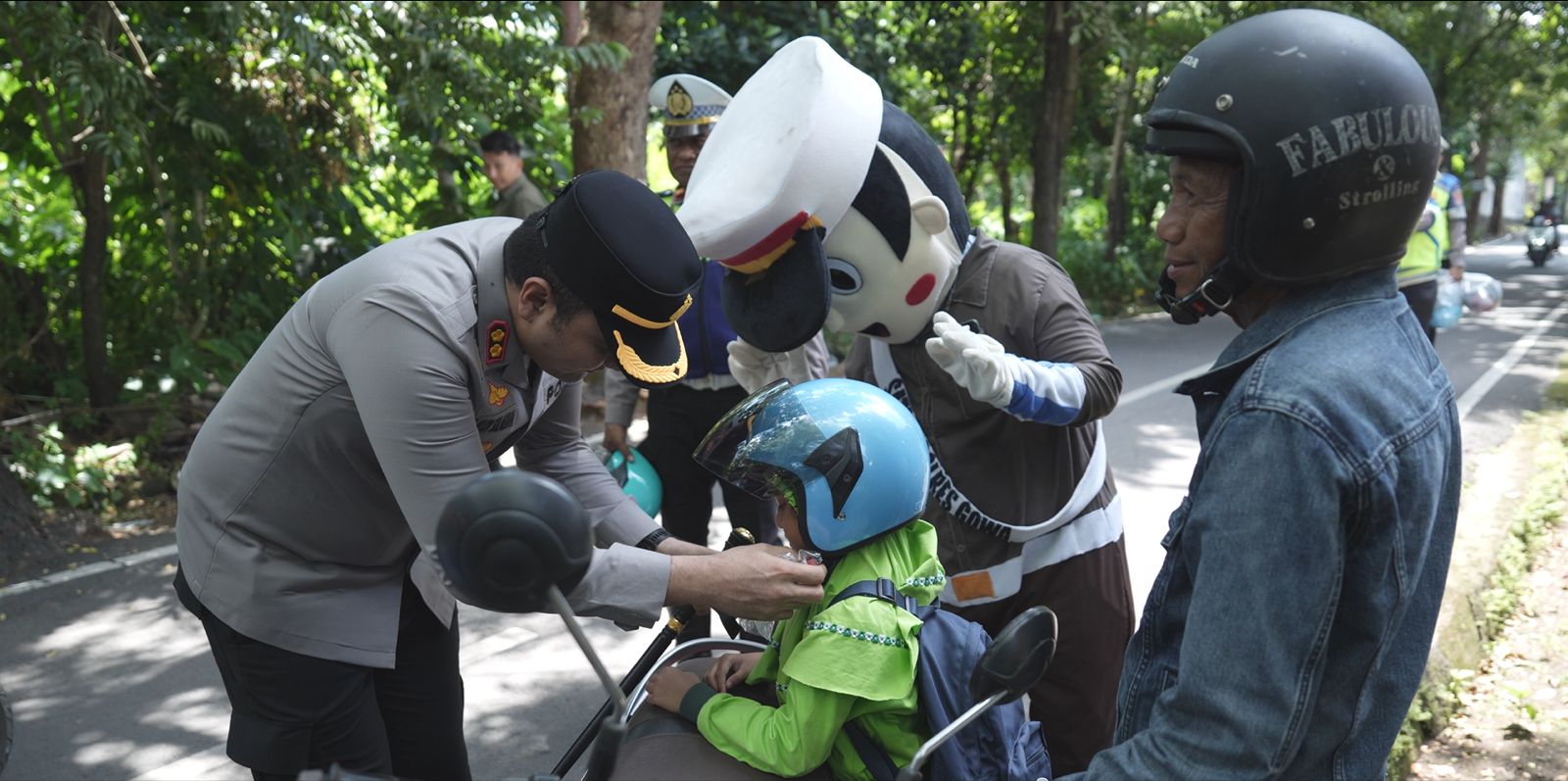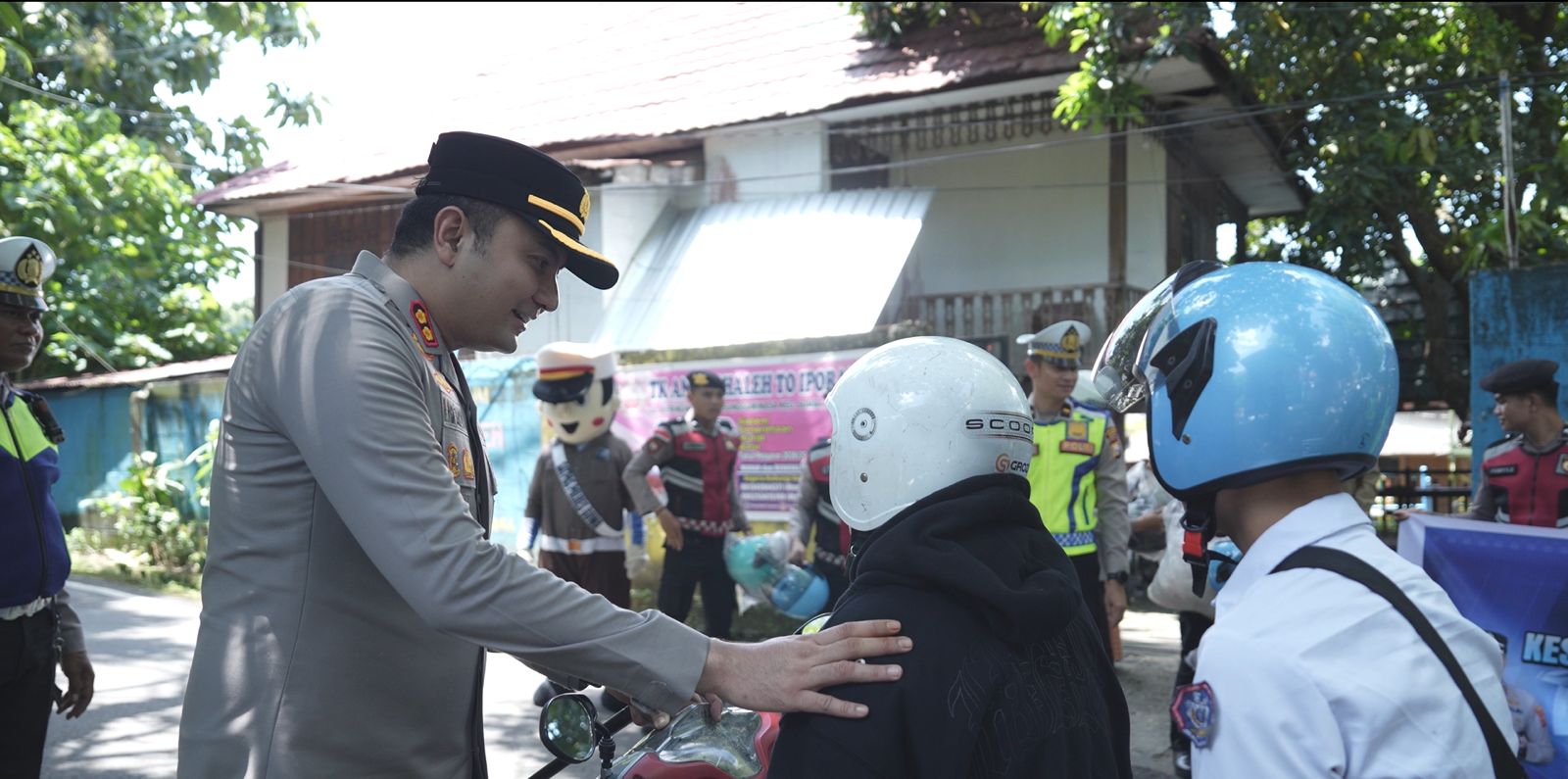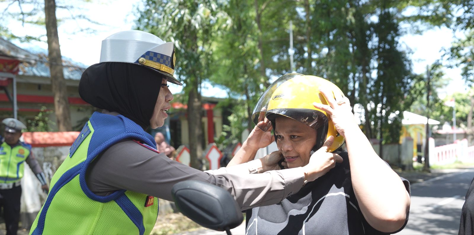 Sebanyak 150 helm dibagikan, yang merupakan dukungan dari pihak swasta. Polisi juga menyoroti masih banyaknya pelanggaran, khususnya oleh pengendara di bawah umur.
