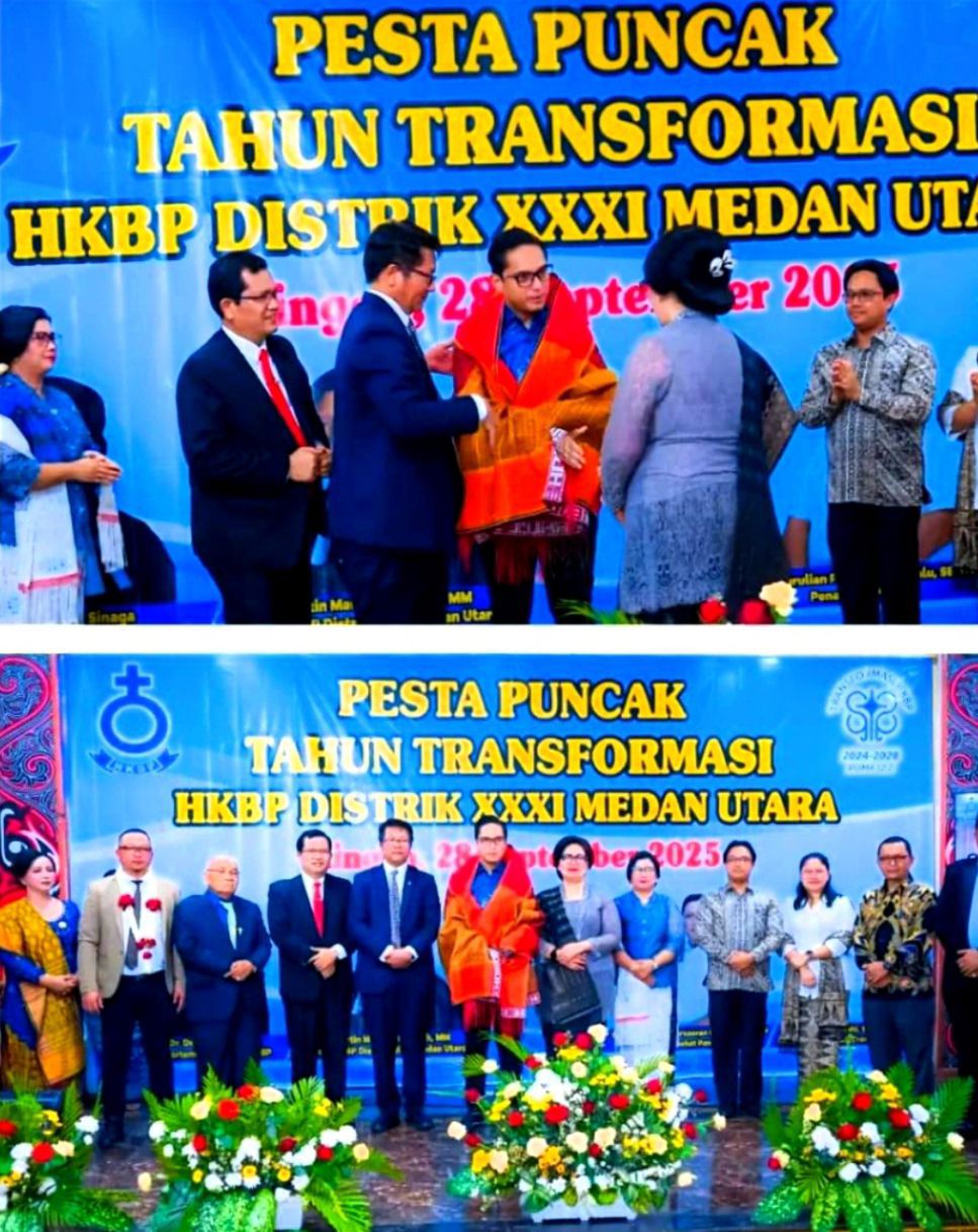 Medan, ELANGMASNEWS.COM,- Ribuan jemaat dari berbagai gereja HKBP yang tergabung dalam Distrik 31 Medan Utara berkumpul di Gedung Sekolah Minggu HKBP Efrata Martubung untuk merayakan Pesta Puncak Tahun Transformasi, Minggu (28/9/2025).