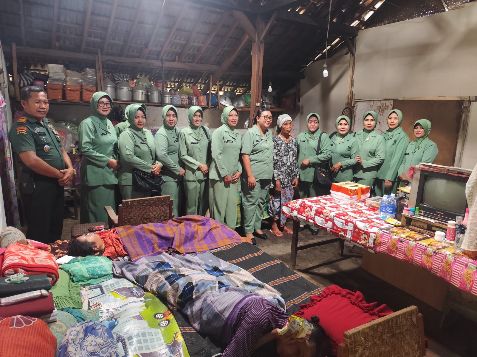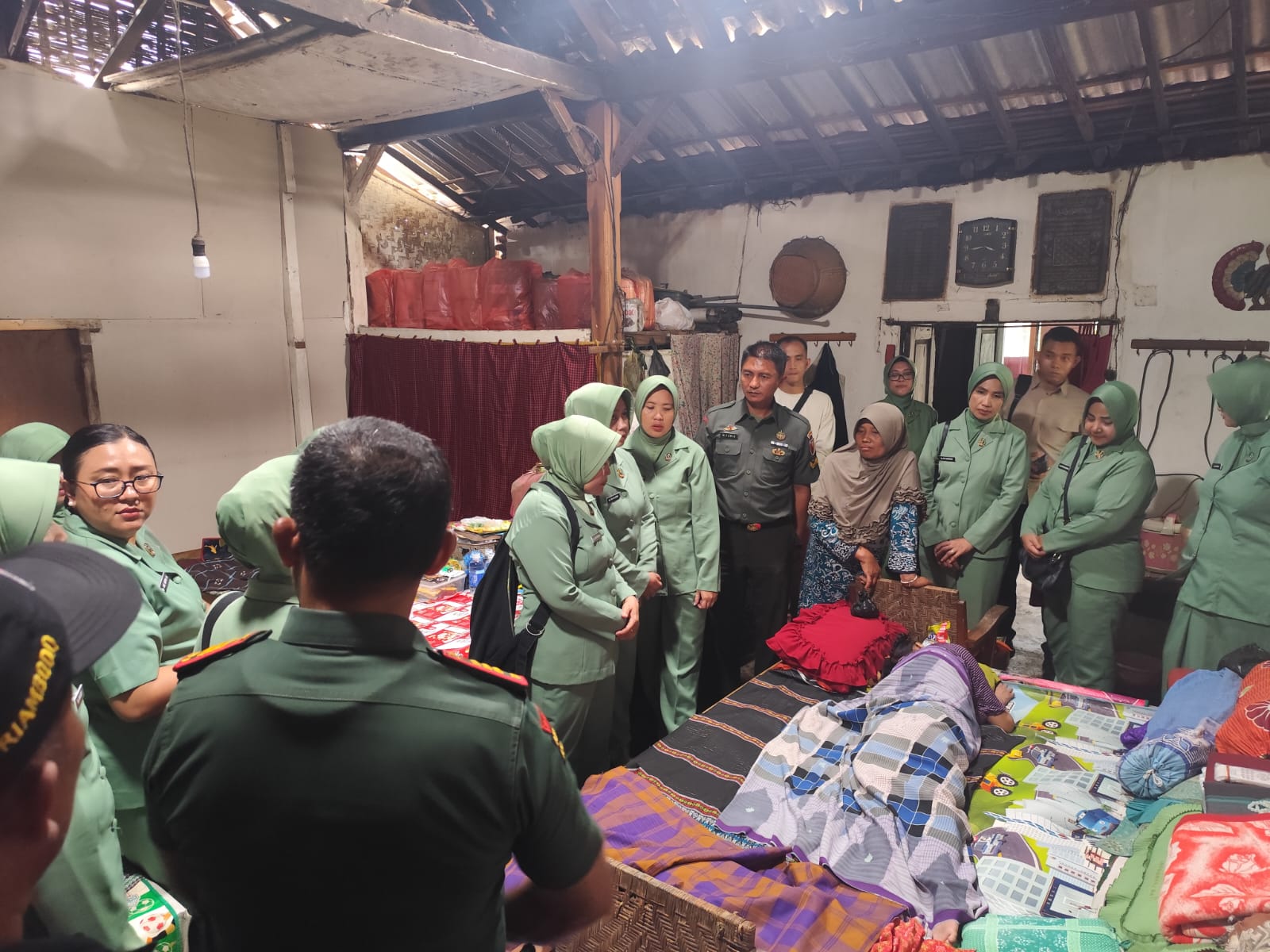 Didampingi Wakil Ketua Persit KCK Cabang XXXII, Ny. Endah Sultoni, beserta jajaran pengurus, rombongan mengunjungi salah satu warga penyandang difabel untuk memberikan dukungan moral dan bantuan materiil.