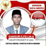DEKLARASI SAMSURI, S.PD.I, M.A CALON PRESIDEN RI 2029 OLEH PARTAI CINTA NEGERI